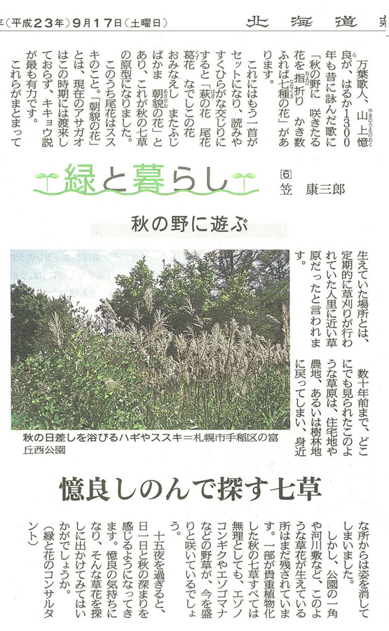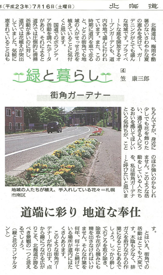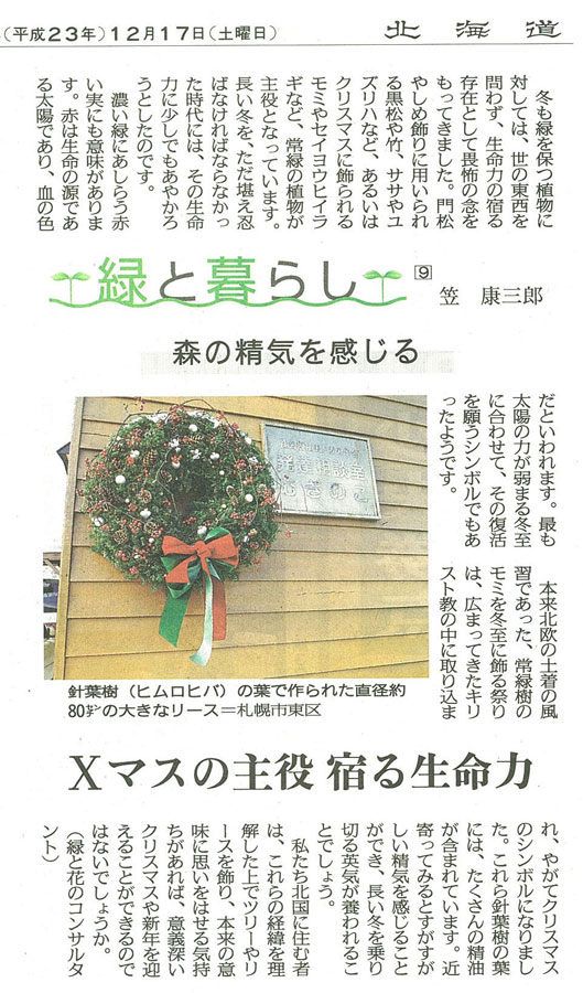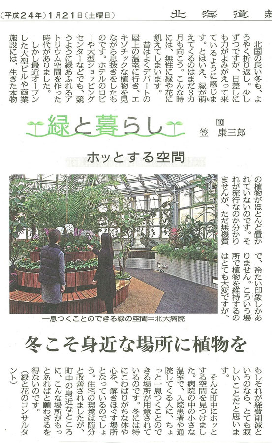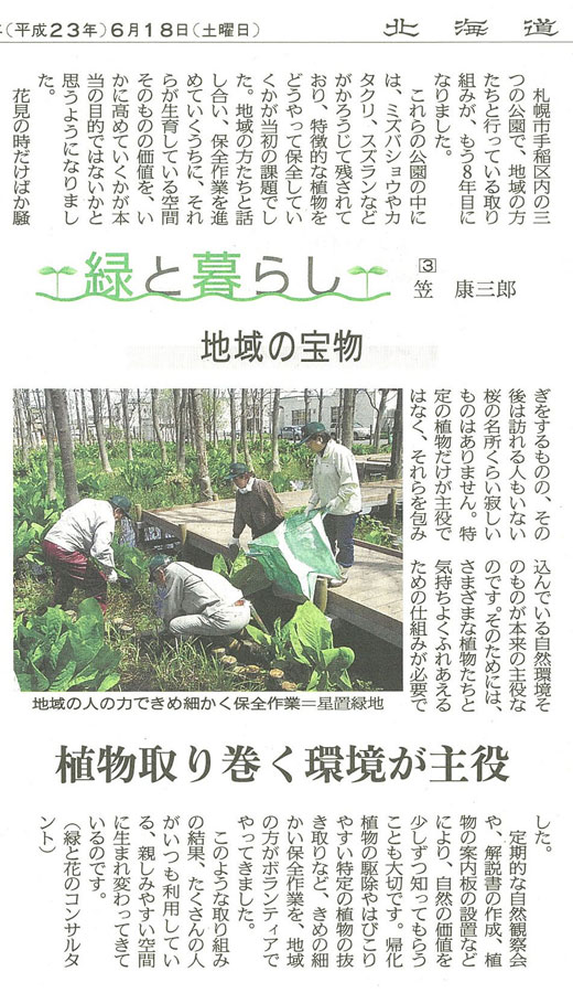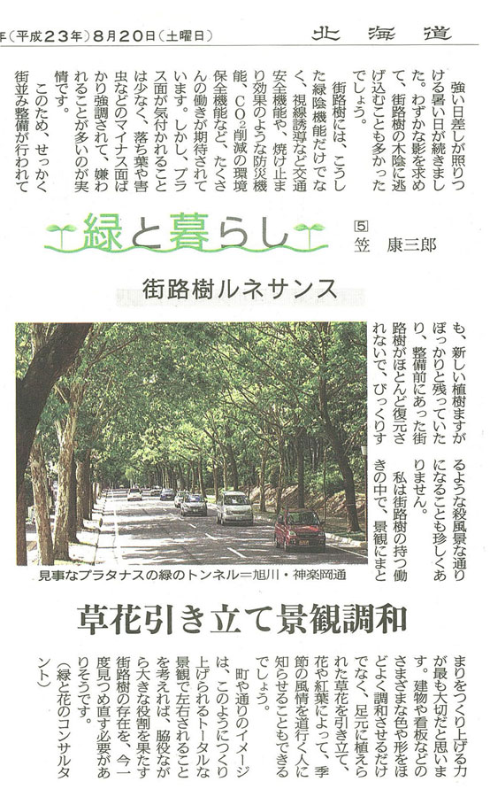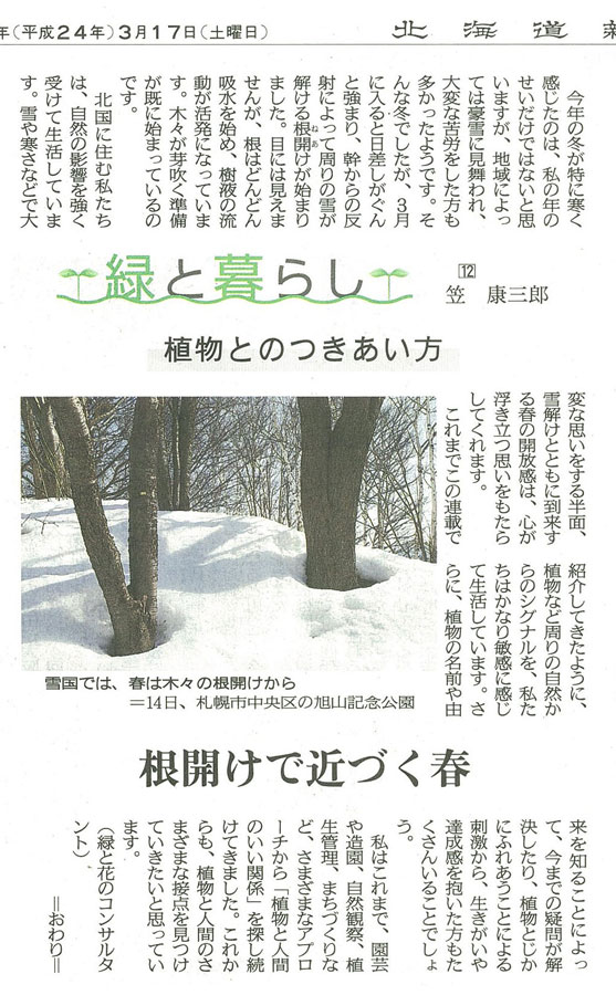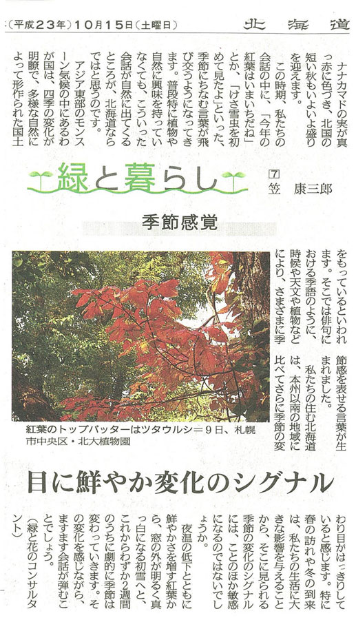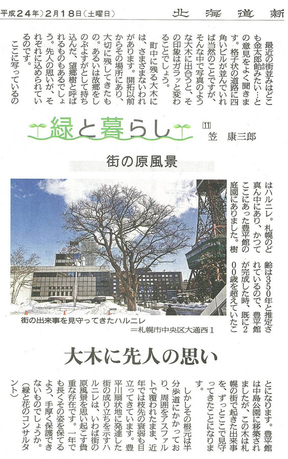 北海道新聞の生活欄に掲載された記事「緑と暮らし」(12回)をご紹介します。